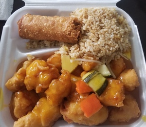 (No Substitutions please) Includes: Wonton or Egg Drop Soup, Egg Roll, and Fried Rice.