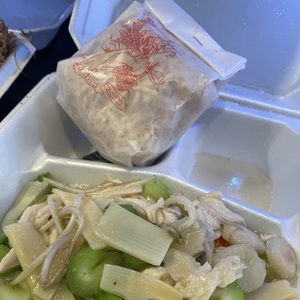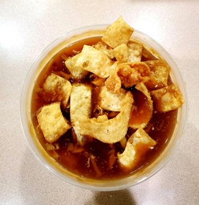 served with crispy noodles